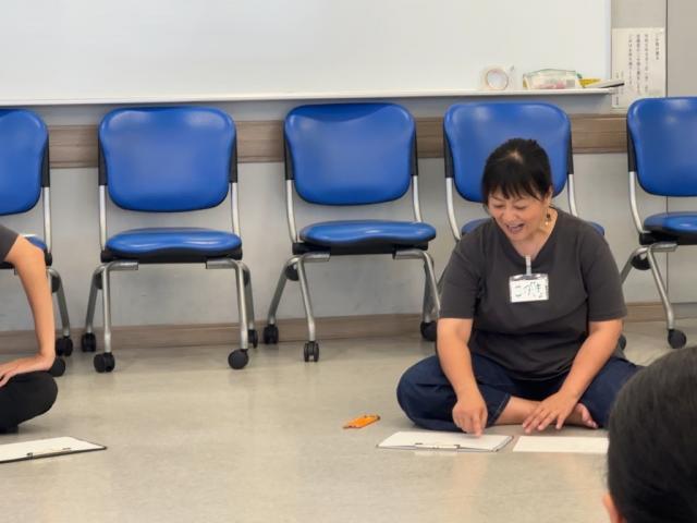 どうやったら子どもたちが楽しめるだろう…と、子どもたちみんなが参加できる方法に頭を悩ませている受講生に、こがきょは、ひとつひとつ丁寧にフォローに入ります。